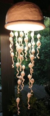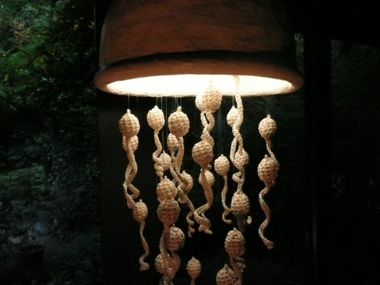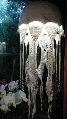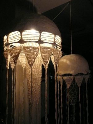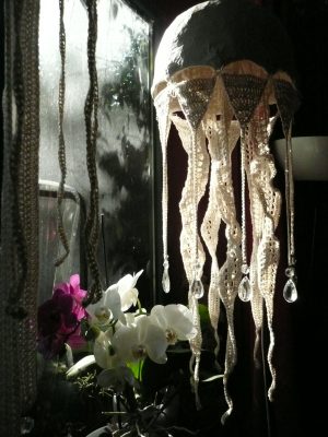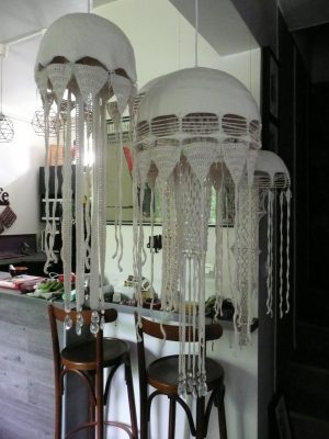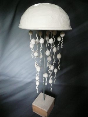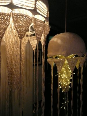 En papier et fil de coton, les méduses mesurent de 70 cm à 1 mètre en hauteur.